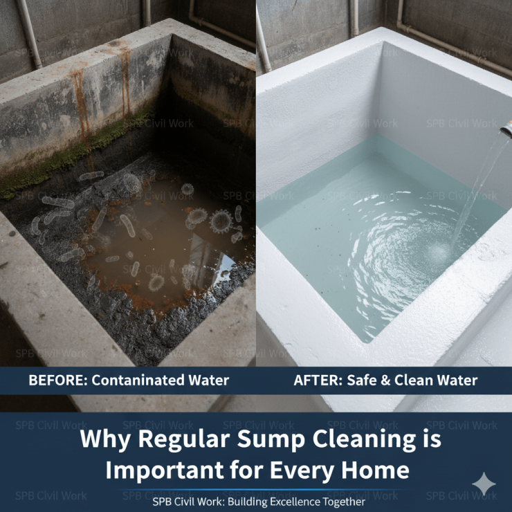 At SPB Civil Work & Cleaning Services, we provide professional sump cleaning using safe methods and modern tools. Our team ensures complete removal of dirt, algae, and bacteria, leaving your sump fresh and ready to store clean water.